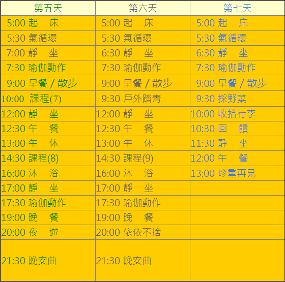 這是斷食營的行程