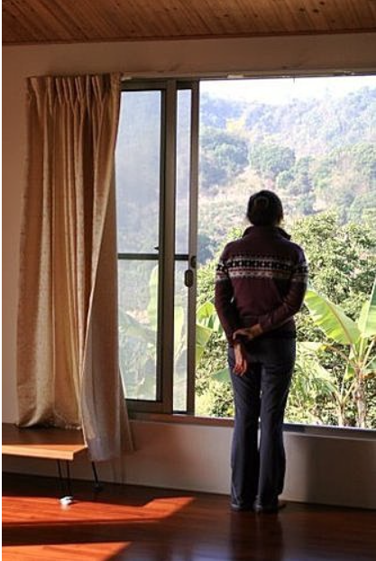 屋中滿壁書籍、音樂CD,並有散發迷人藍光的真空管機相伴 或躺或臥,開窗見景,仰望星辰萬點,遠眺滿眼綠意,便覺此生足矣 蘇老師的自然療法之家,實現了這半個夢想 在這兒的確是可以開窗見景,處處綠意盎然 在活動大廳三面開窗,陽光傾灑在木質地板上,色澤豐美 站在窗邊靜望群山,或是打坐冥想,或躺臥冷敷雙眼,都是至樂享受 什麼事也不作,慢慢的發呆是種幸福 能夠平靜下來,放心野望,會覺得跟自己更親近了