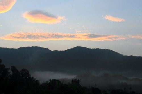 第三天的晨曦望著它,不覺發呆一陣真美,已忘了~不知多久沒迎接過日出,上次的記憶停在么兒2個月左右,那時常不成眠的日子,樓下傳來蘇媽天使的歌聲,該起床了今天又是嶄新的一天。