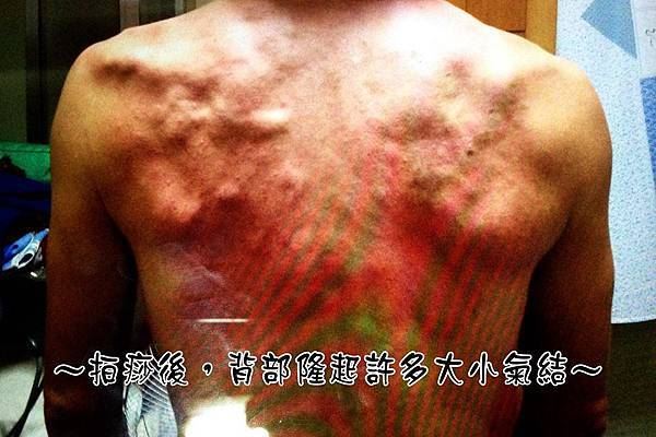 如果在報到當天就鼓起勇氣不怕痛,找蘇媽媽拍痧,把沉寂已久的背痛拍出來,七天的斷食效果應該會更好。復食第二天下午,蘇媽媽在課程中提到背部為膀胱經所在,不通會影響睡眠品質。這期斷食的前五夜均在淺眠狀況下渡過,我想何不試一試拍痧,解決無法深睡的困擾。約十分鐘的拍打煎熬後,背部果真佈滿氣結,還隆起兩座小山丘,右側顆還較大,右背疼痛已20多年,一直無法久卧,造成睡眠總在四小時後"疼"醒!蘇媽媽神通廣大,把躲在身背裡的黑山老妖打了出來,回家後這幾天果然好睡好起,睡粉飽!傳統民俗自然療法果真有其獨到之處,感謝辛勞的蘇媽媽。