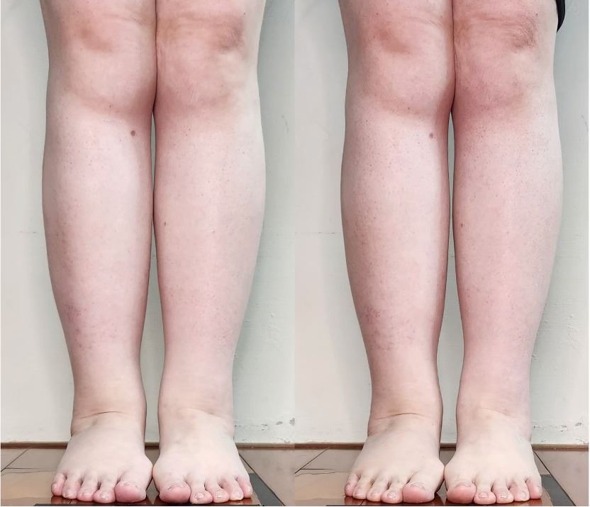 斷食後,腿瘦了,膝蓋、小腿、腳踝、腳背都沒有原來那麼腫了,也變得比較直了。