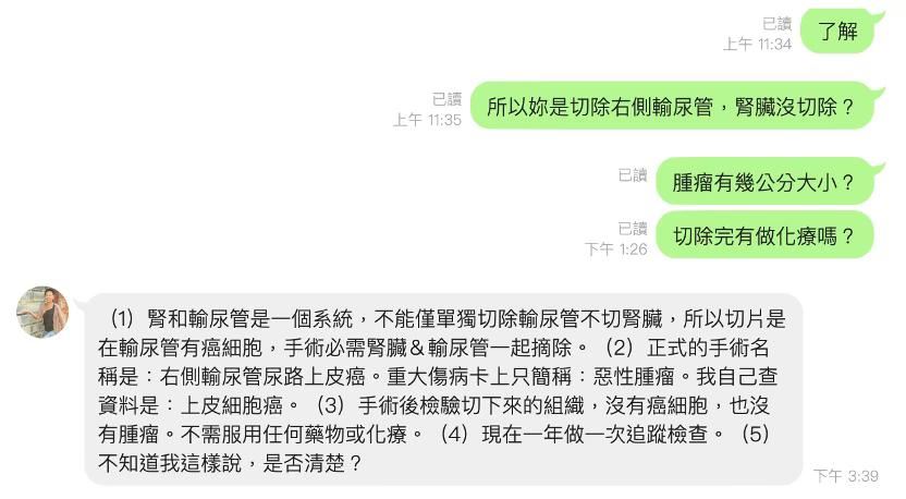 我跟她說那妳在11年前不是白白被醫生切掉了腎臟與輸尿管,